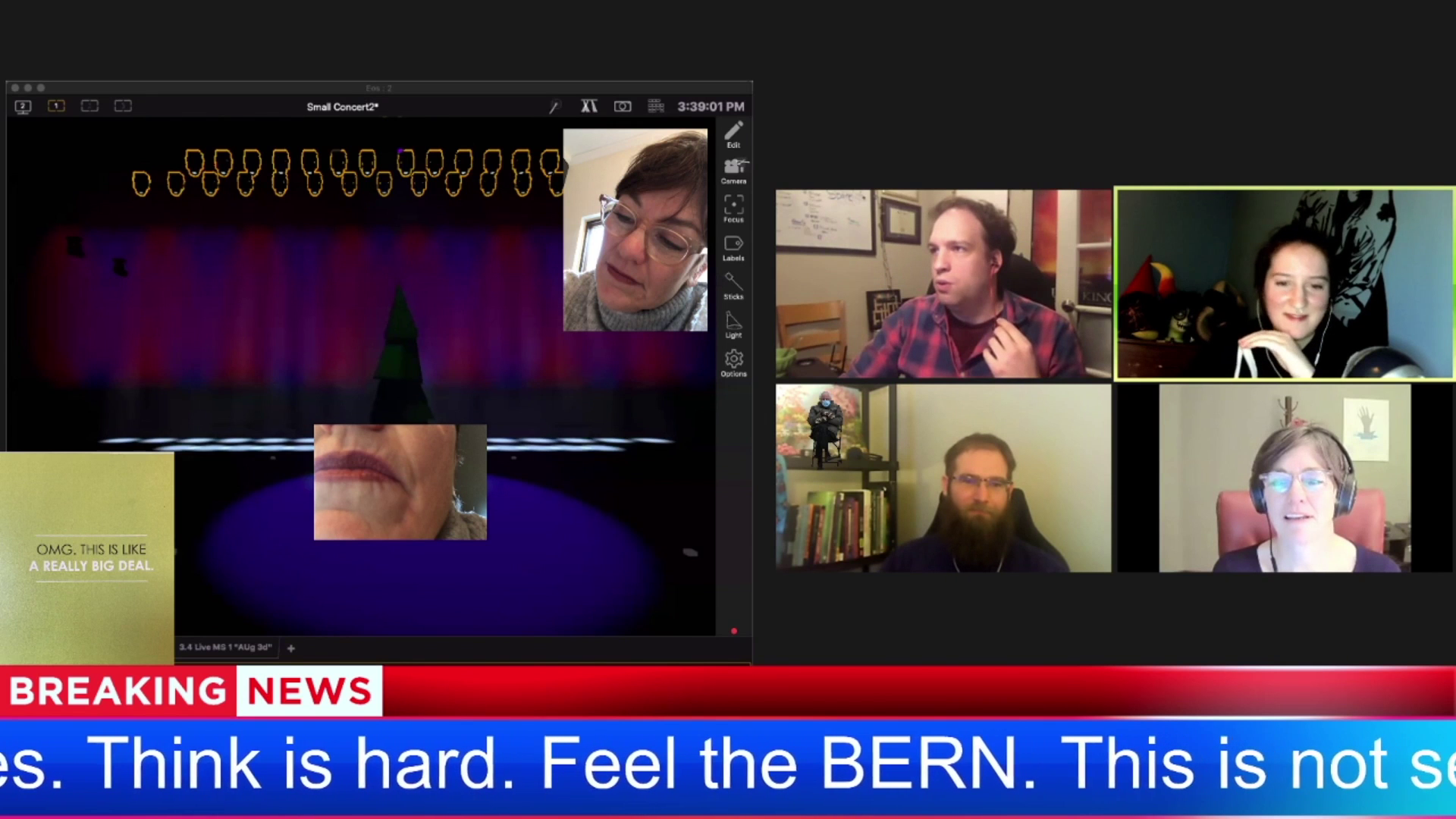 Our experiments will provide a safe space for creators to try and potentially fail, and to learn from one another's experiences. The plan is to create a presentation of some kind—not specifically a performance, but rather some kind of live expression of the ideas that the group has been playing with—in order to share ideas and digital experiences.